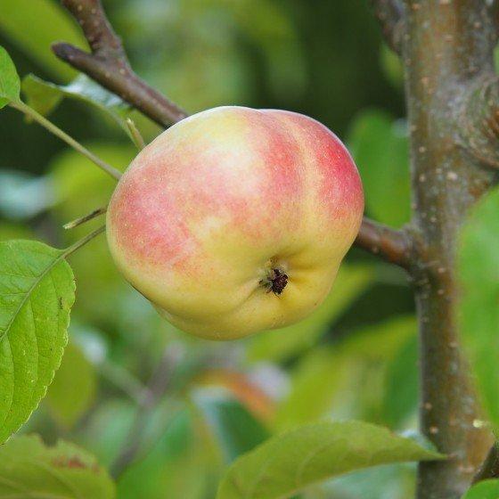 Assez petit, jaune clair, marqué de rouge à l'insolation. Chair ferme, craquante, juteuse et sucrée.