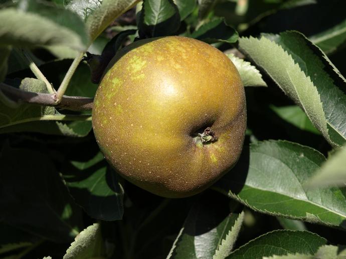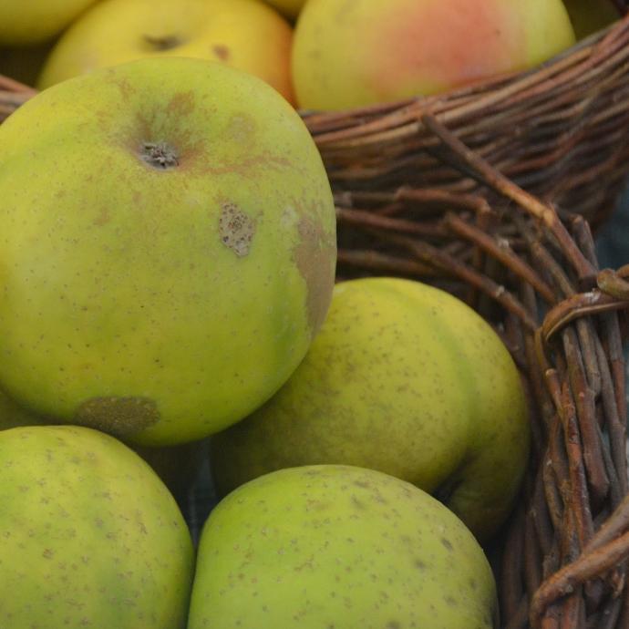Gros fruit aplati aux pôles et irrégulier. Chair fine, tendre et sucrée, parfumée. Elle se consomme à la croque pendant l’hiver, mais c’est une pomme qui convient aussi parfaitement aux préparations de tartes et tartes tatin ou en garniture de plats chauds.